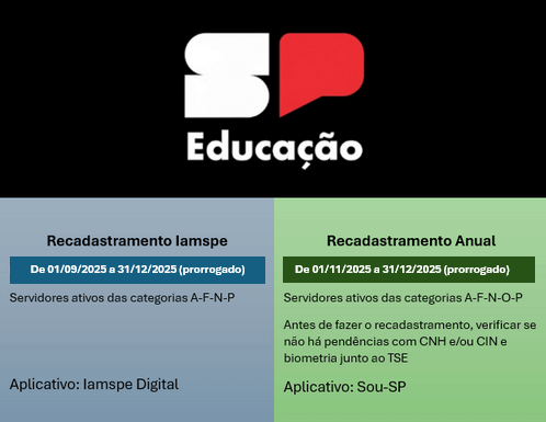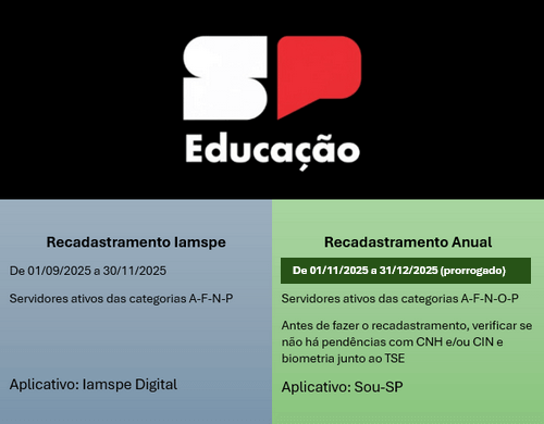 Recadastramento Anual: de 01/11/2025 a 31/12/2025 (prorrogado), via Sou-SP, link, clique aqui!